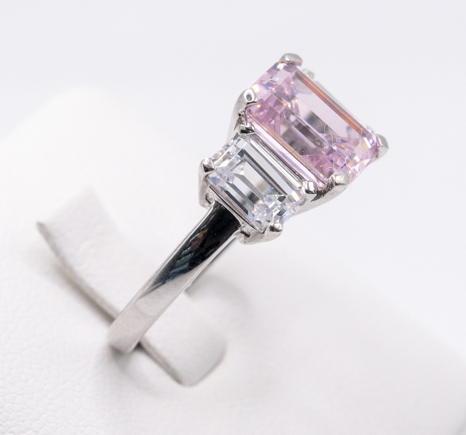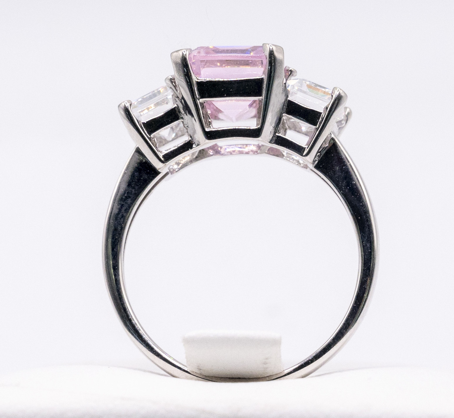 The pink centre stone measures around mm (0.9cm) in width and 10mm (1cm) in length