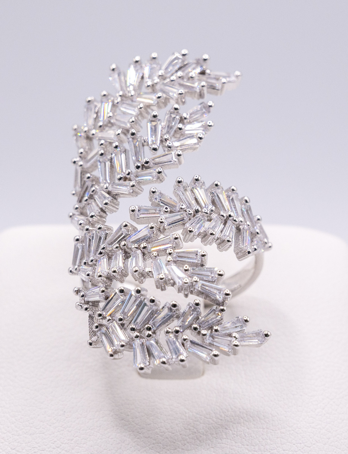 3mm lower shank, leaf wrap design ladies cocktail ring
