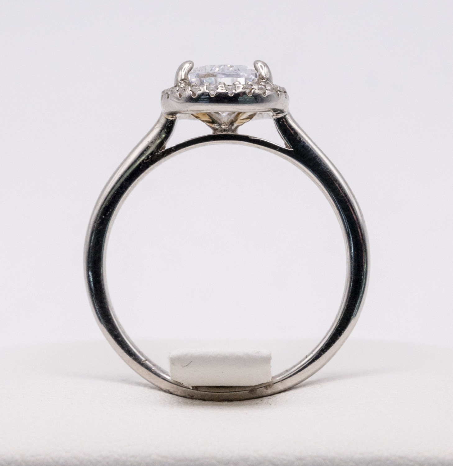 The ring façade measures around 9mm (0.9cm) in width and 12mm (1.2cm) in length including the border set zirconia multi paved stones