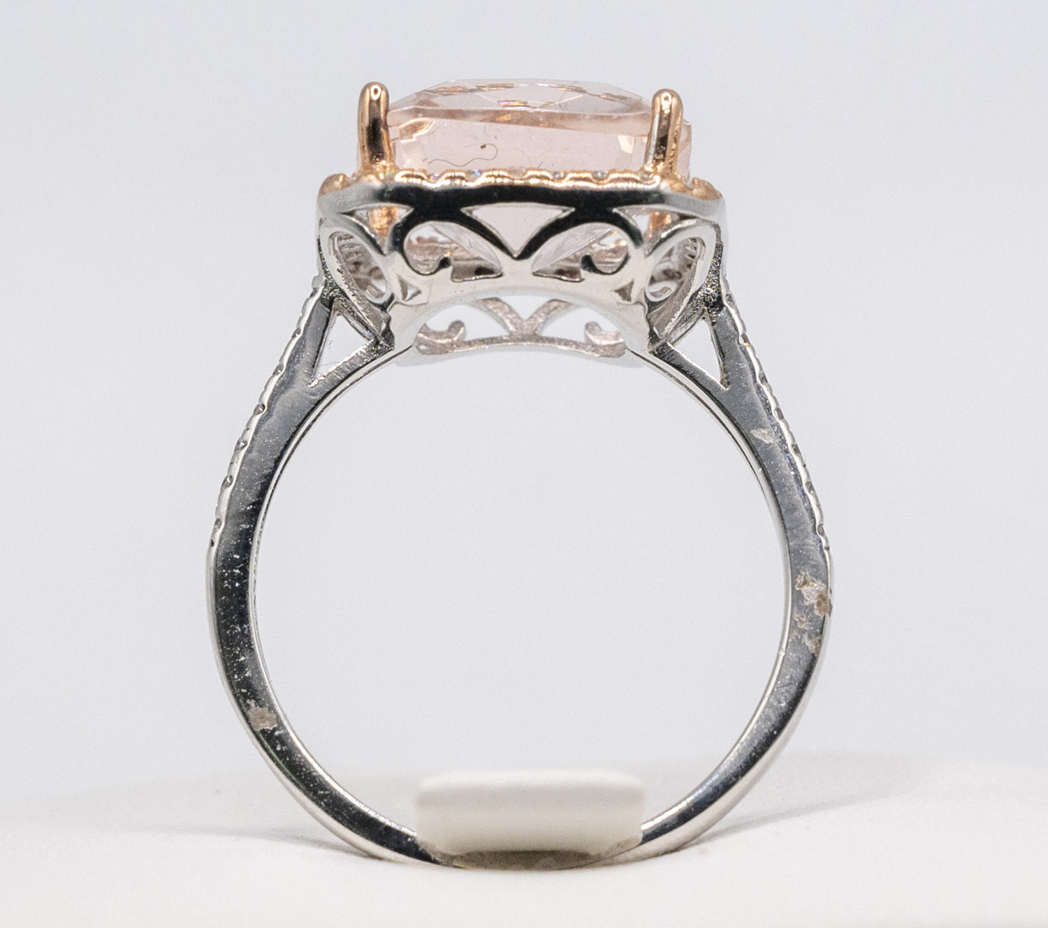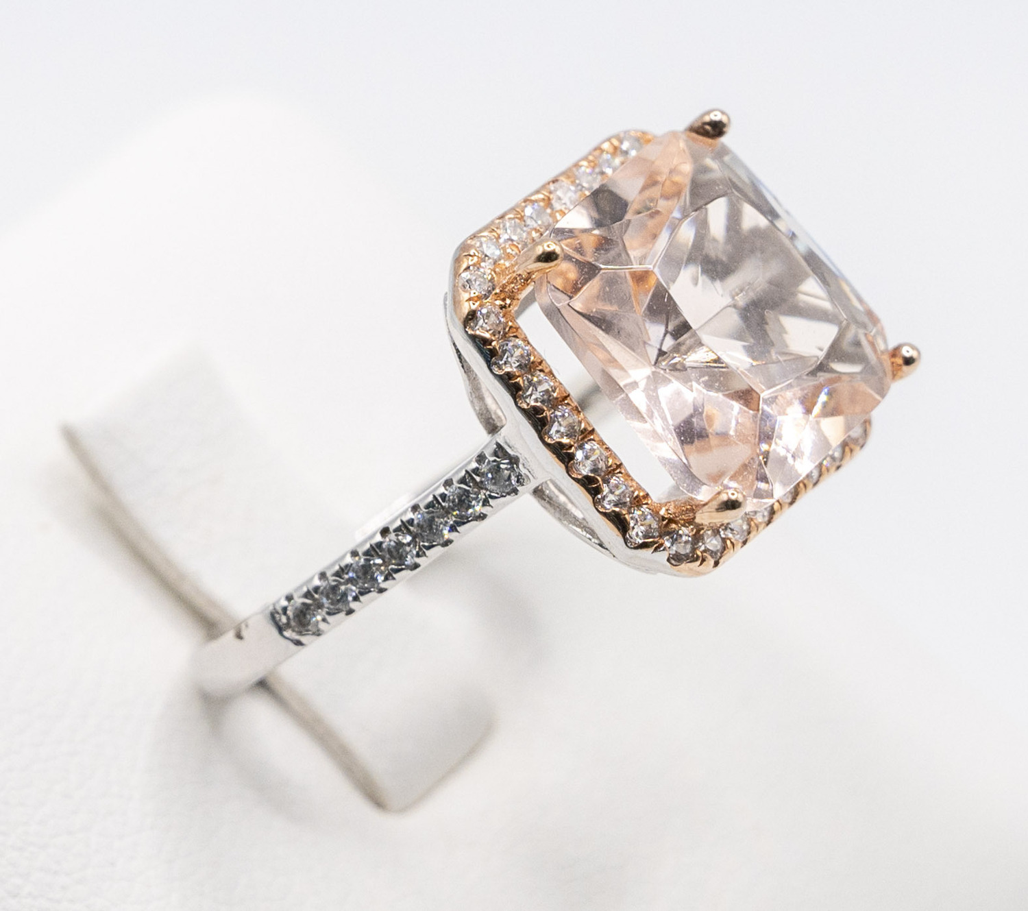 1.5mm shank, 4 corner claw setting, with cushion cut powder pink zirconia stones