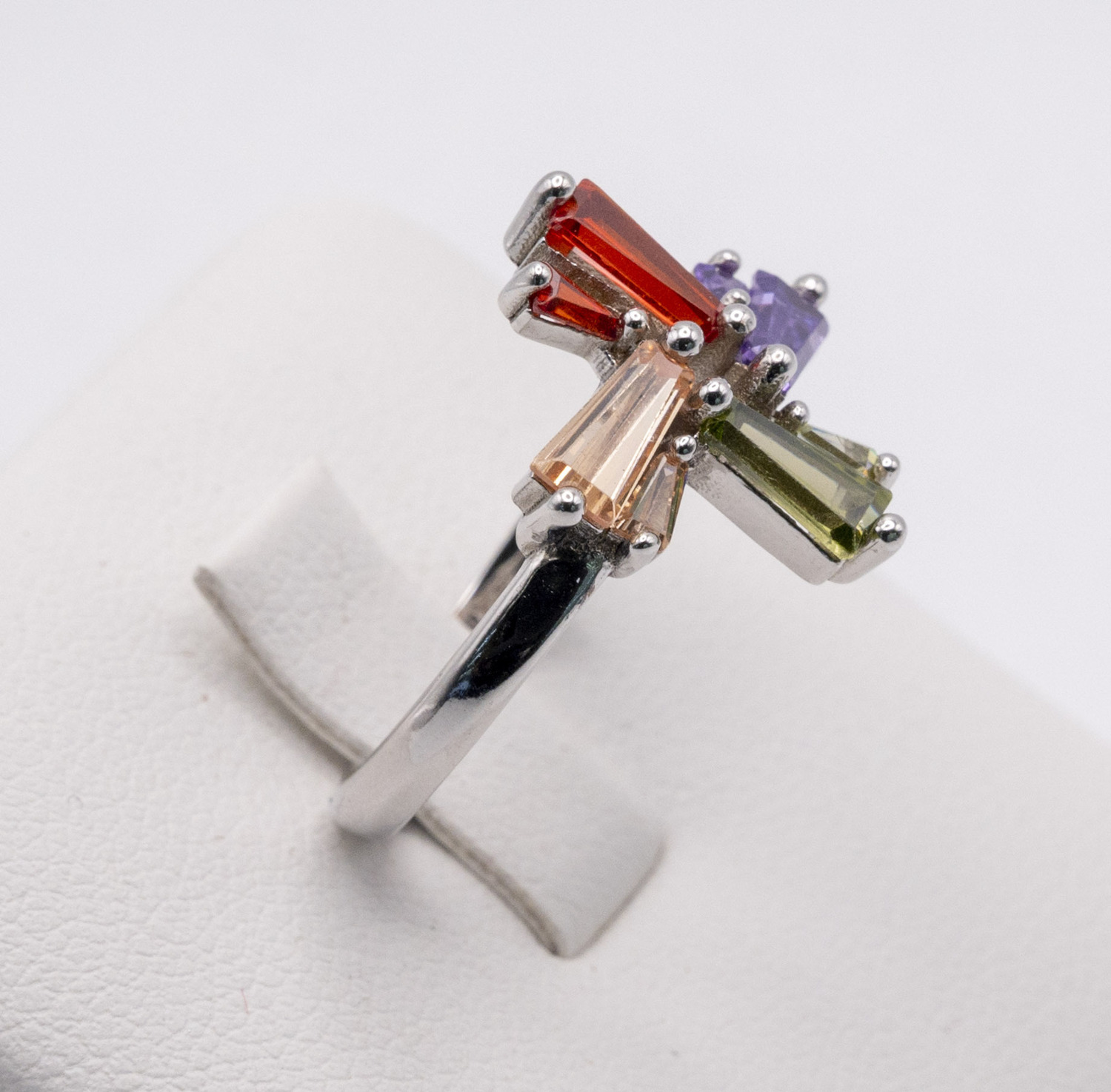Multi coloured zirconia stone set on size O- (O and a half size) ring