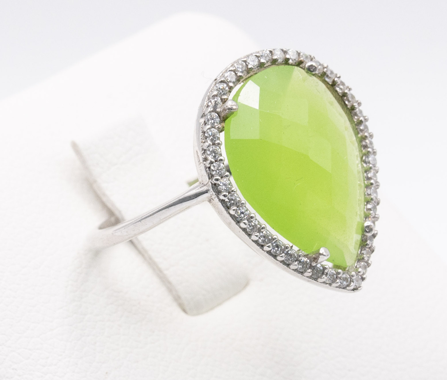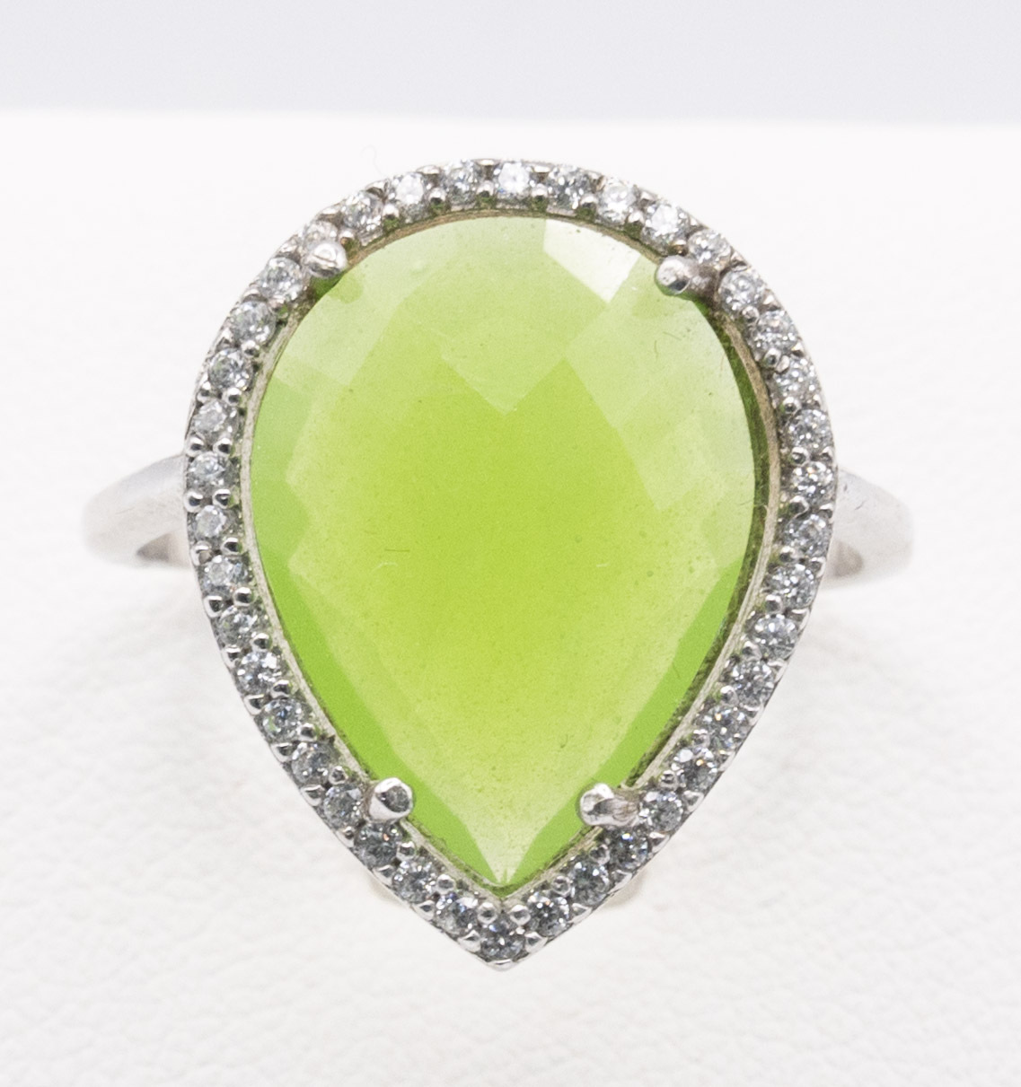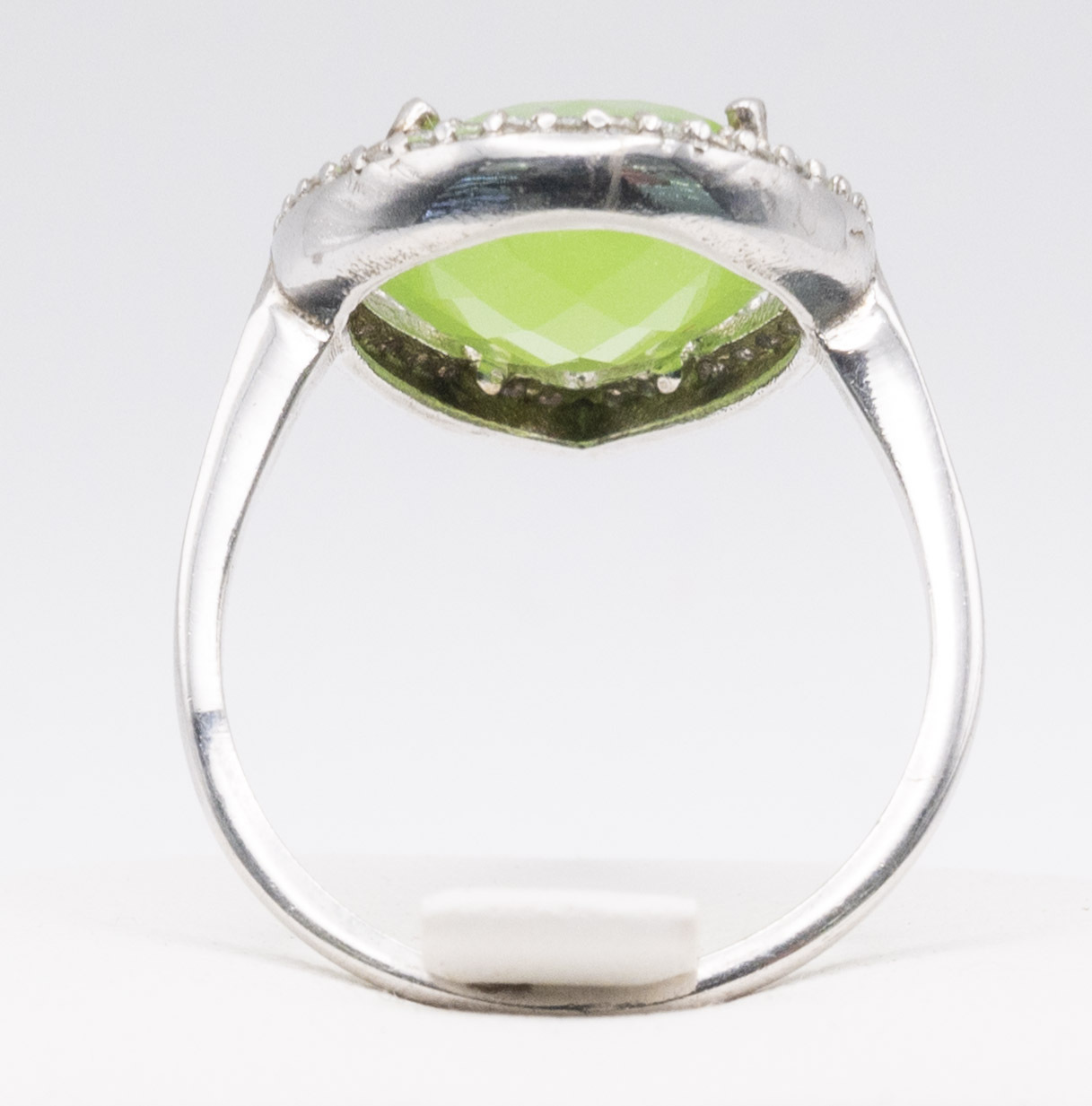 The ring façade measures around 17mm (1.7cm) in width and 20mm (2cm) in length including the border set zirconia multi paved stones
