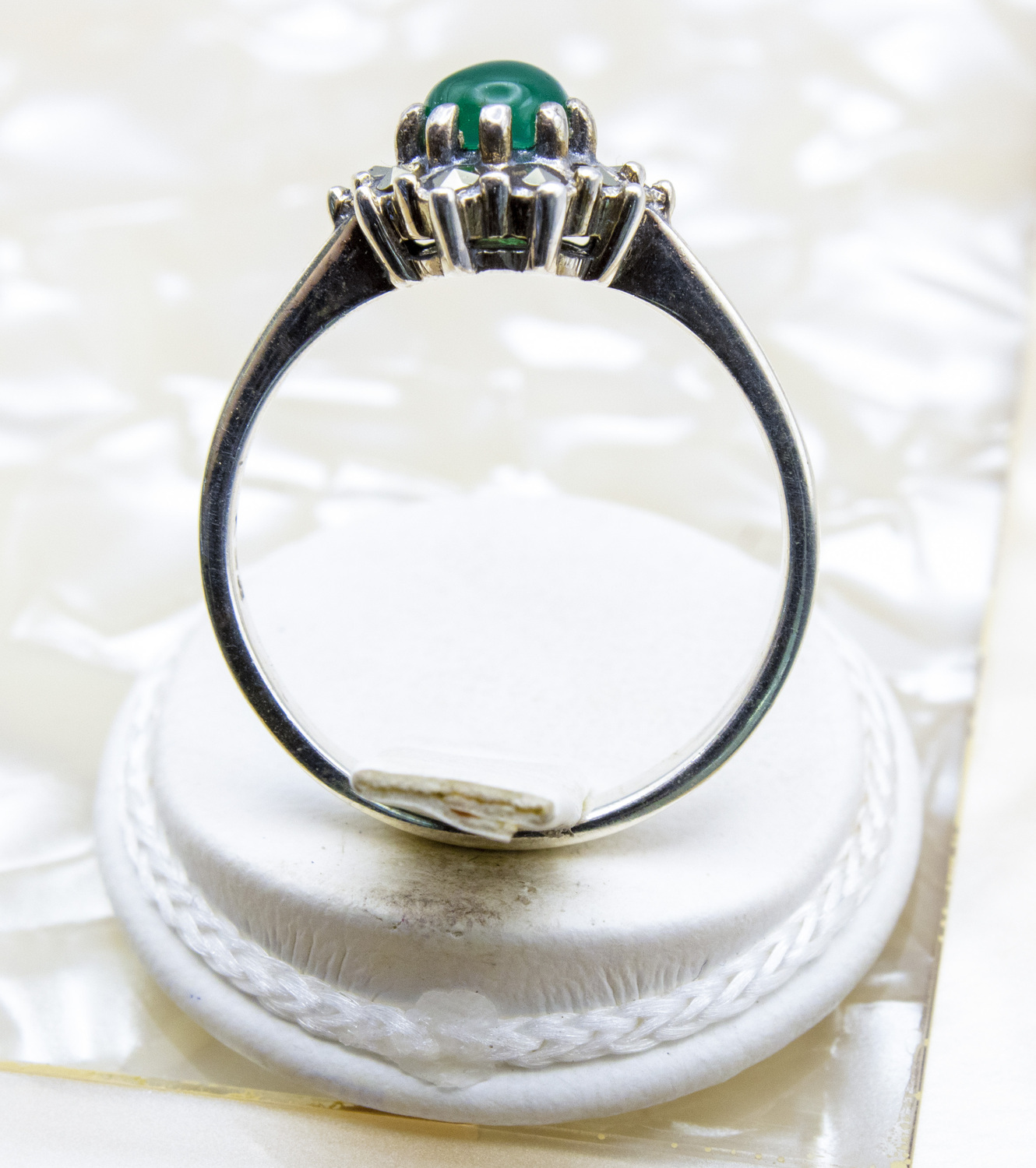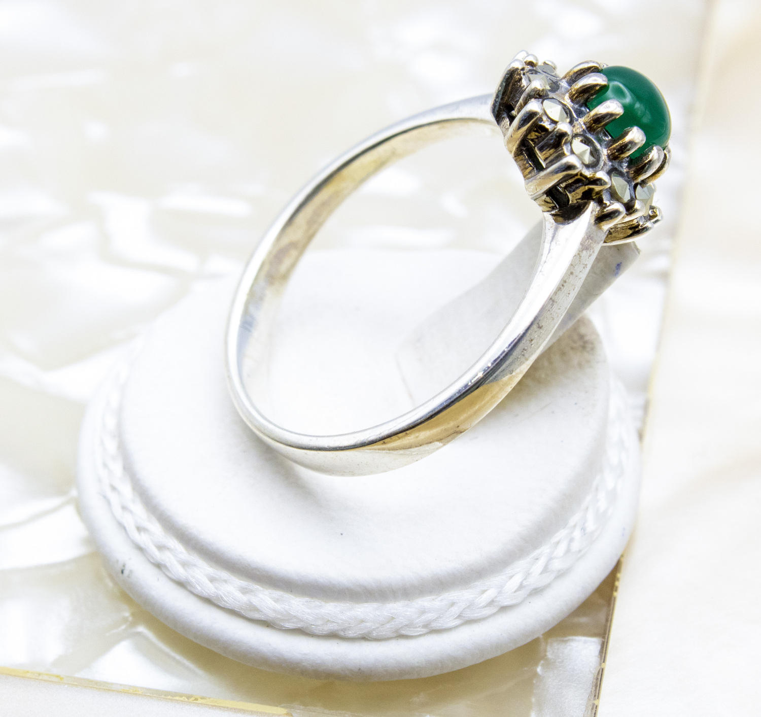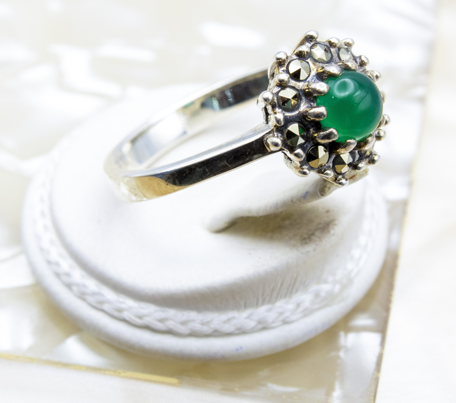 A spectacular shade of green natural gem stone set on a sturdy silver ring