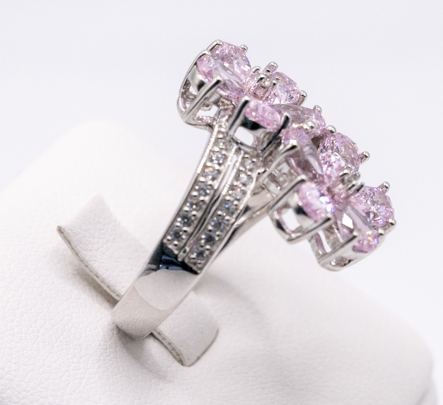 The façade of the ring measures around 38mm (3.8cm) in width including the multi paved accent stones set on duplicated shoulders and 24mm (2.4cm) in length