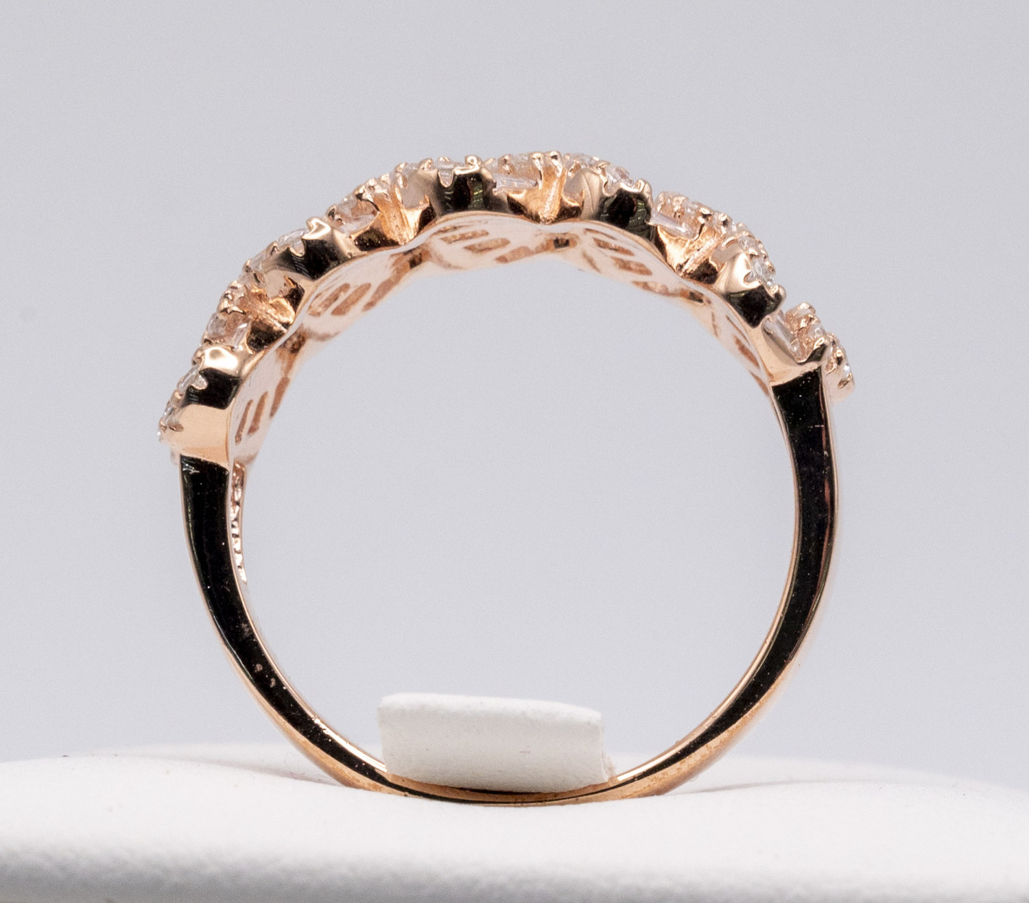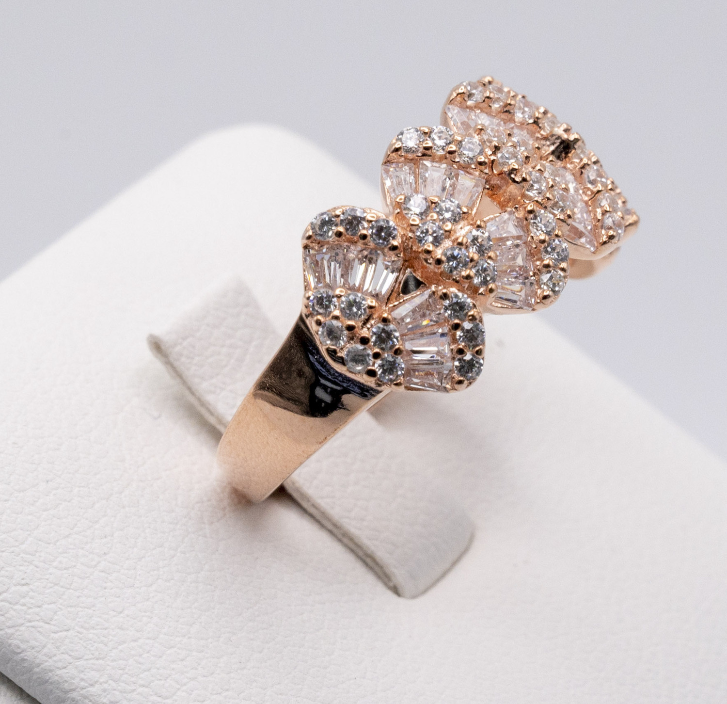 Leaves Designed Zirconia Stones Set on Rose Gold Plated 925 Sterling Silver Ring