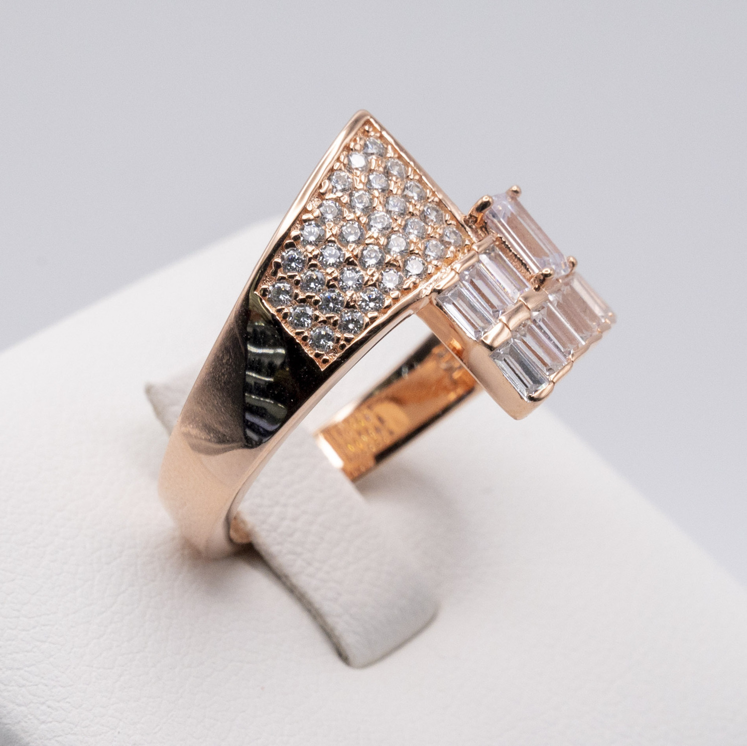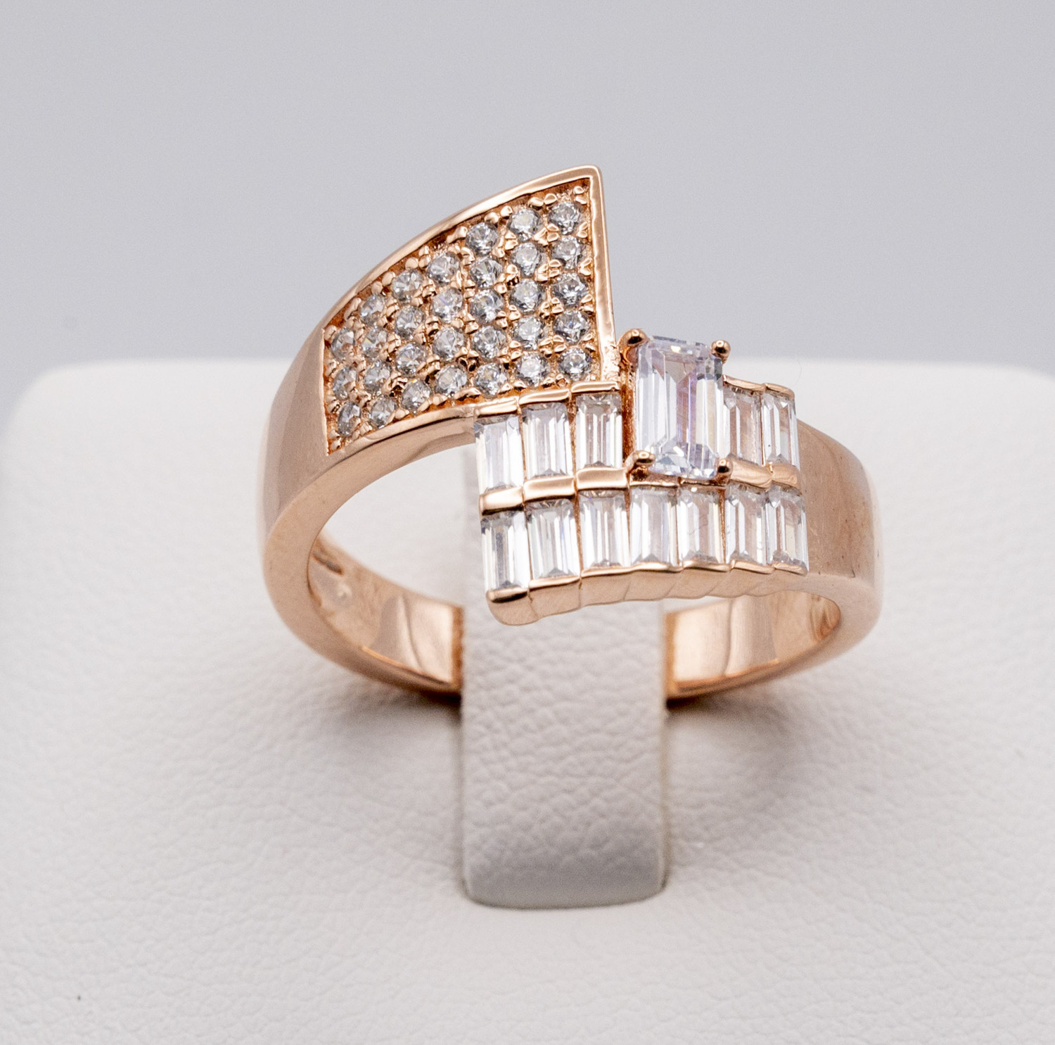 Overlapping Zirconia Stones on Rose Gold Plated 925 Sterling Silver Ring