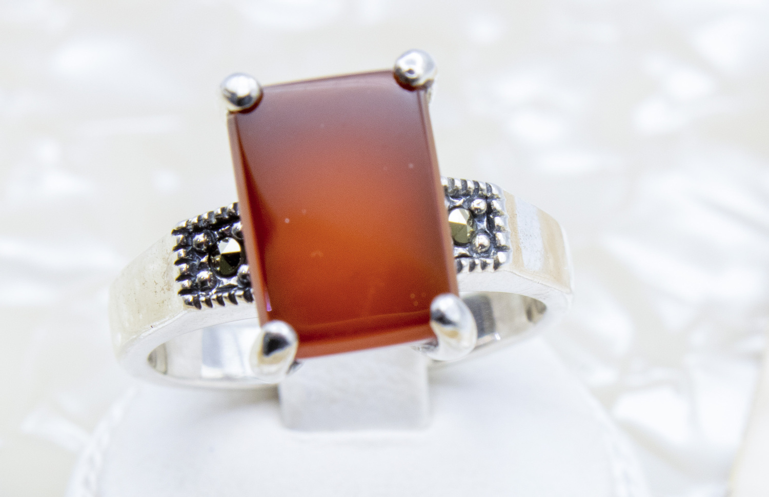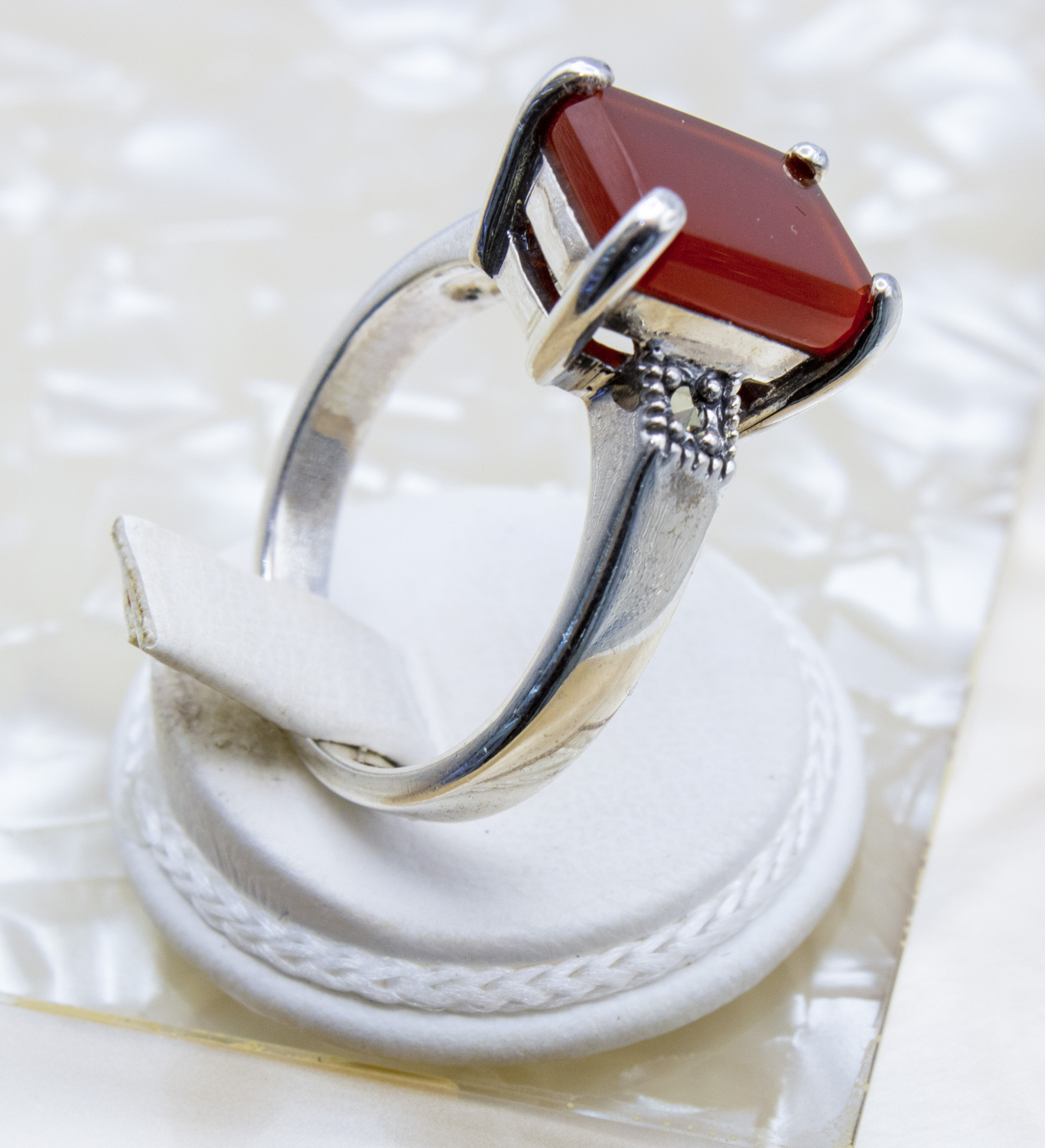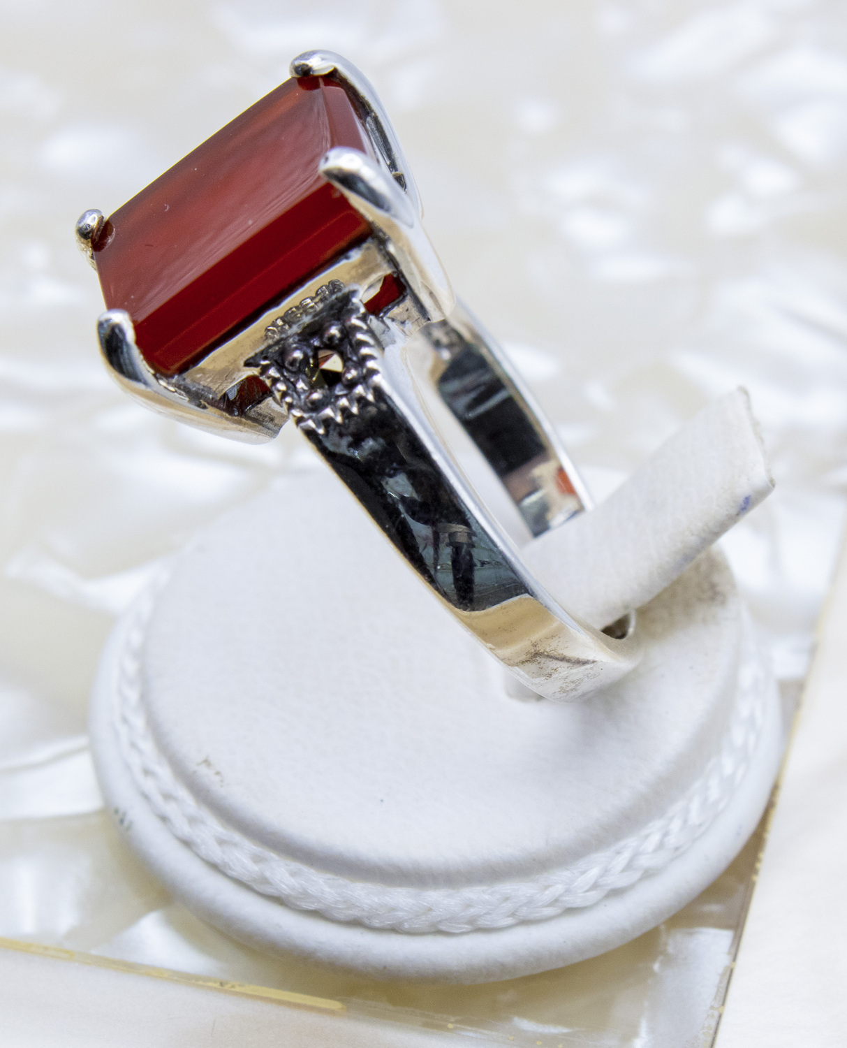 4mm lower shank, rectangular cut silver ring