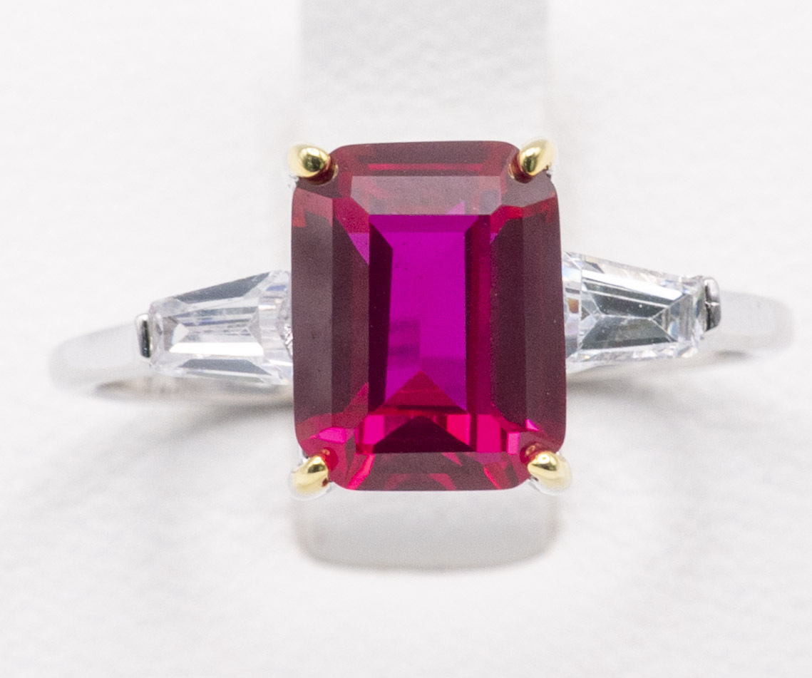Rectangular Cut Pink Zircon Stone Set on Silver and Rhodium