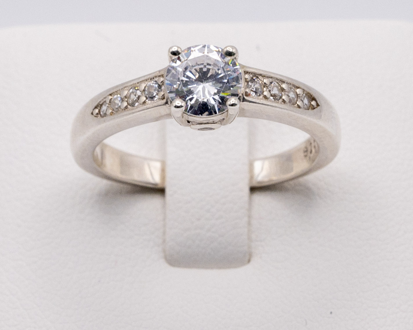 Solitaire Zirconia stone accentuated with twin side multi paved accent stones