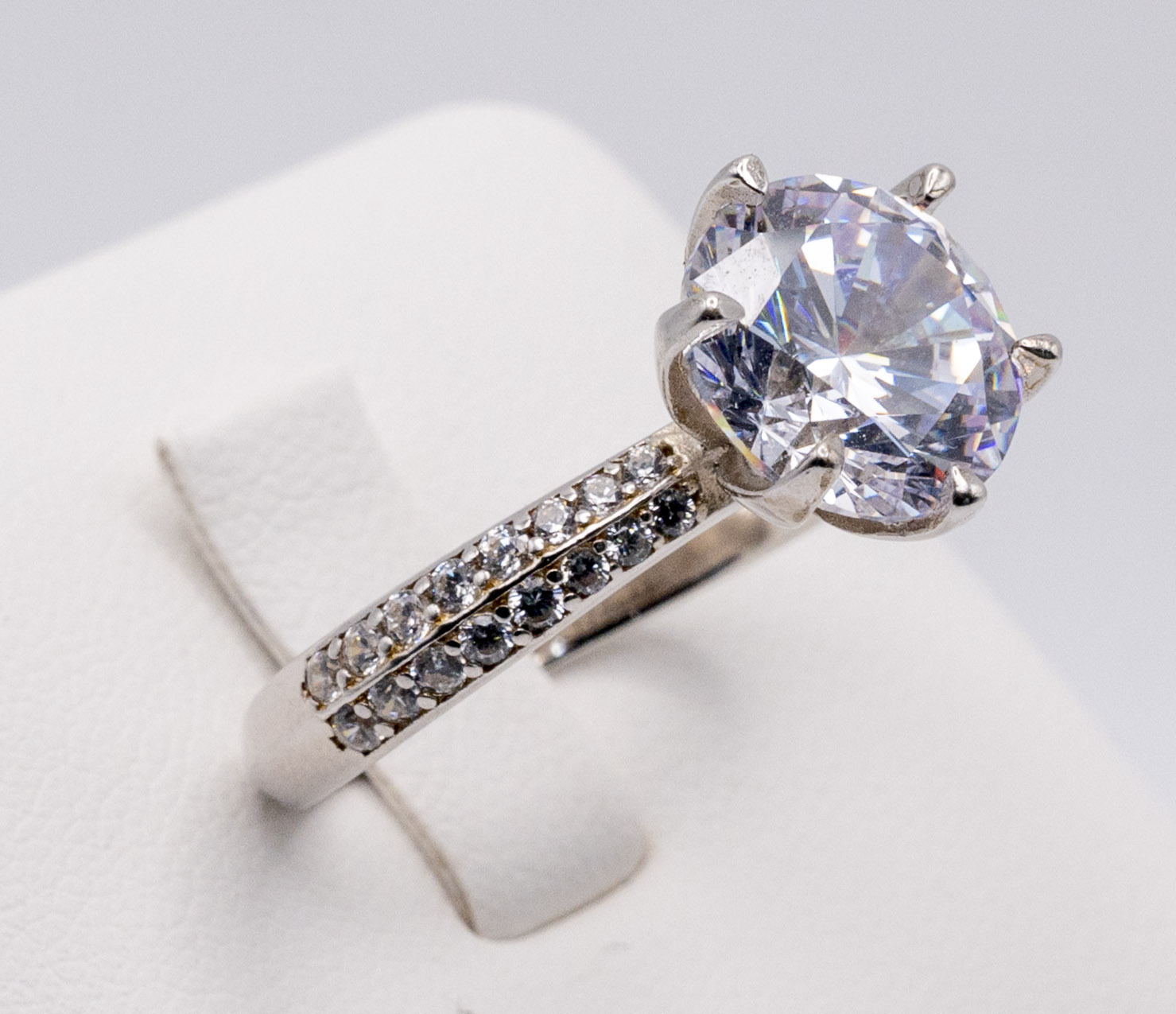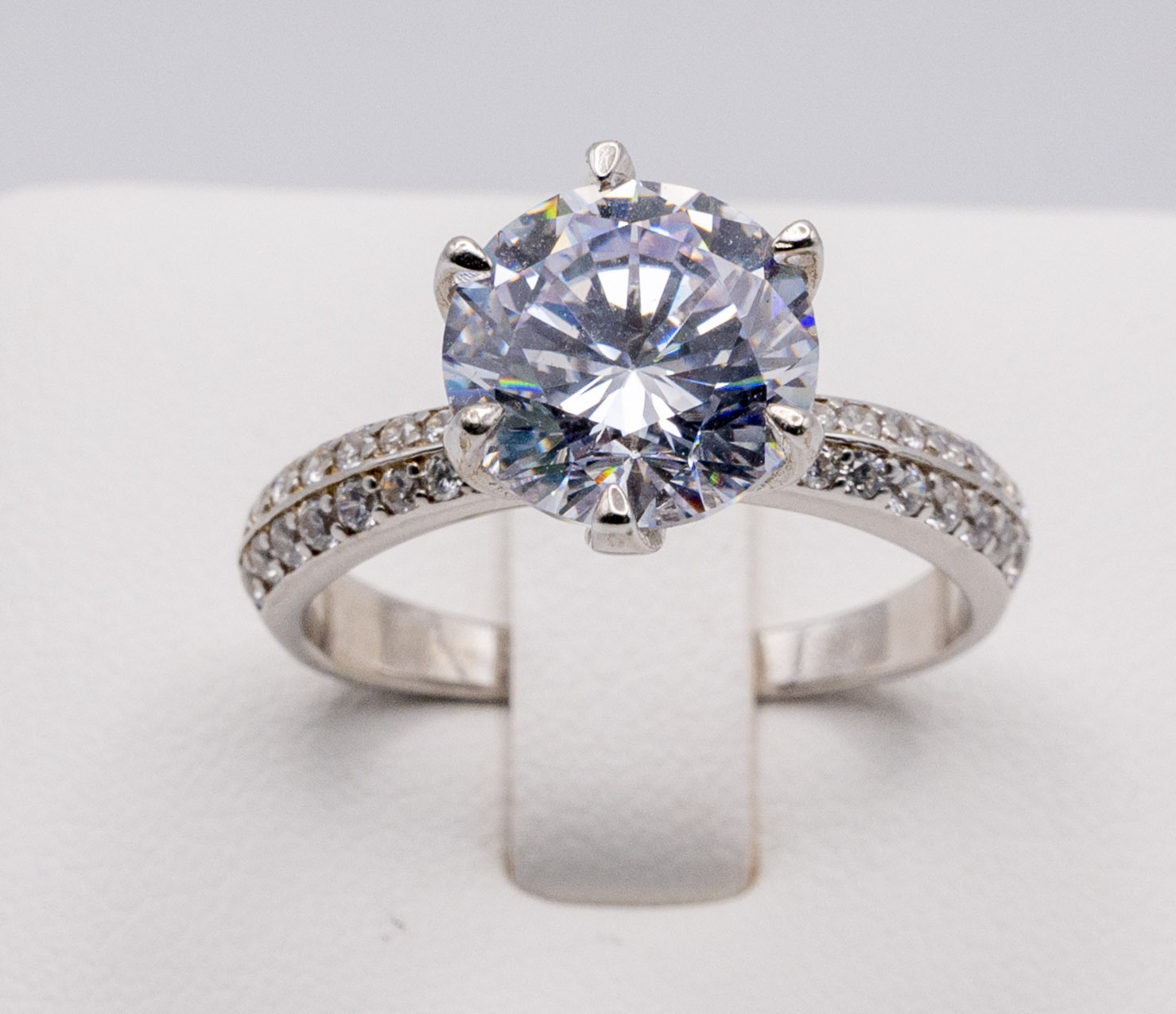 Solitaire Zirconia stone accentuated with twin side multi paved accent stones