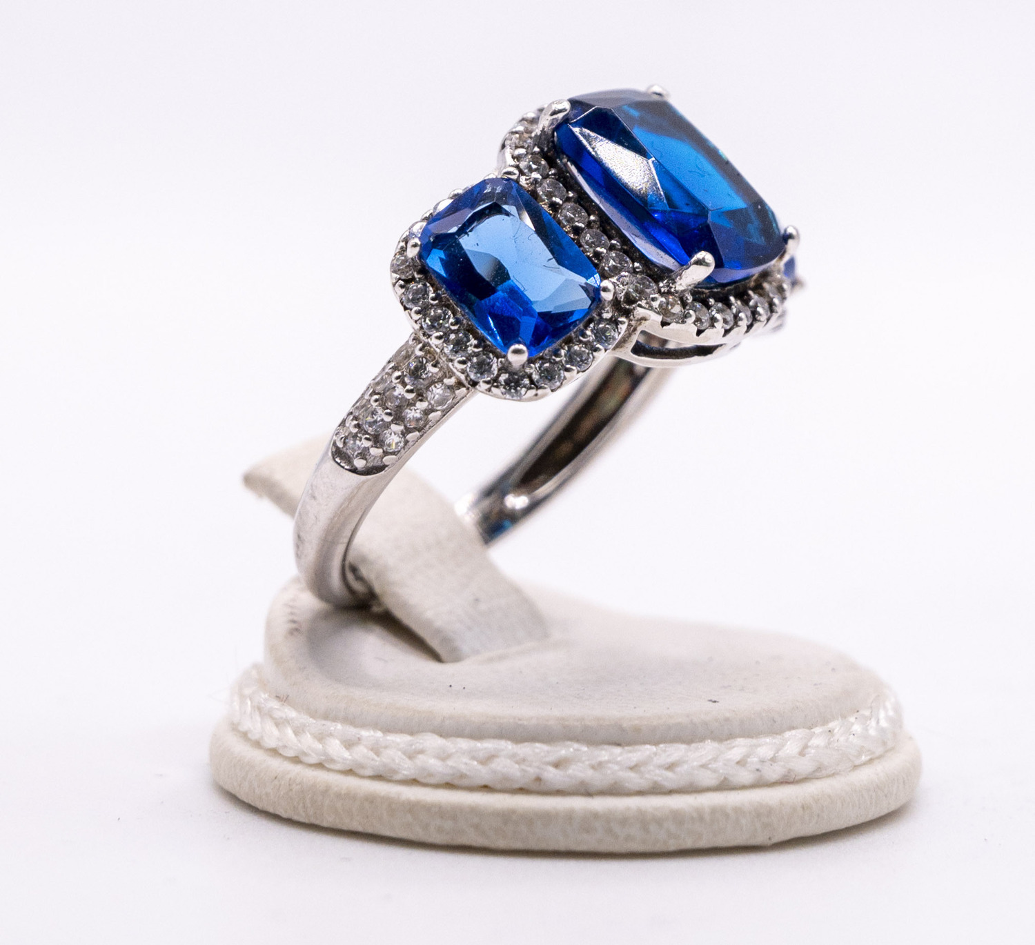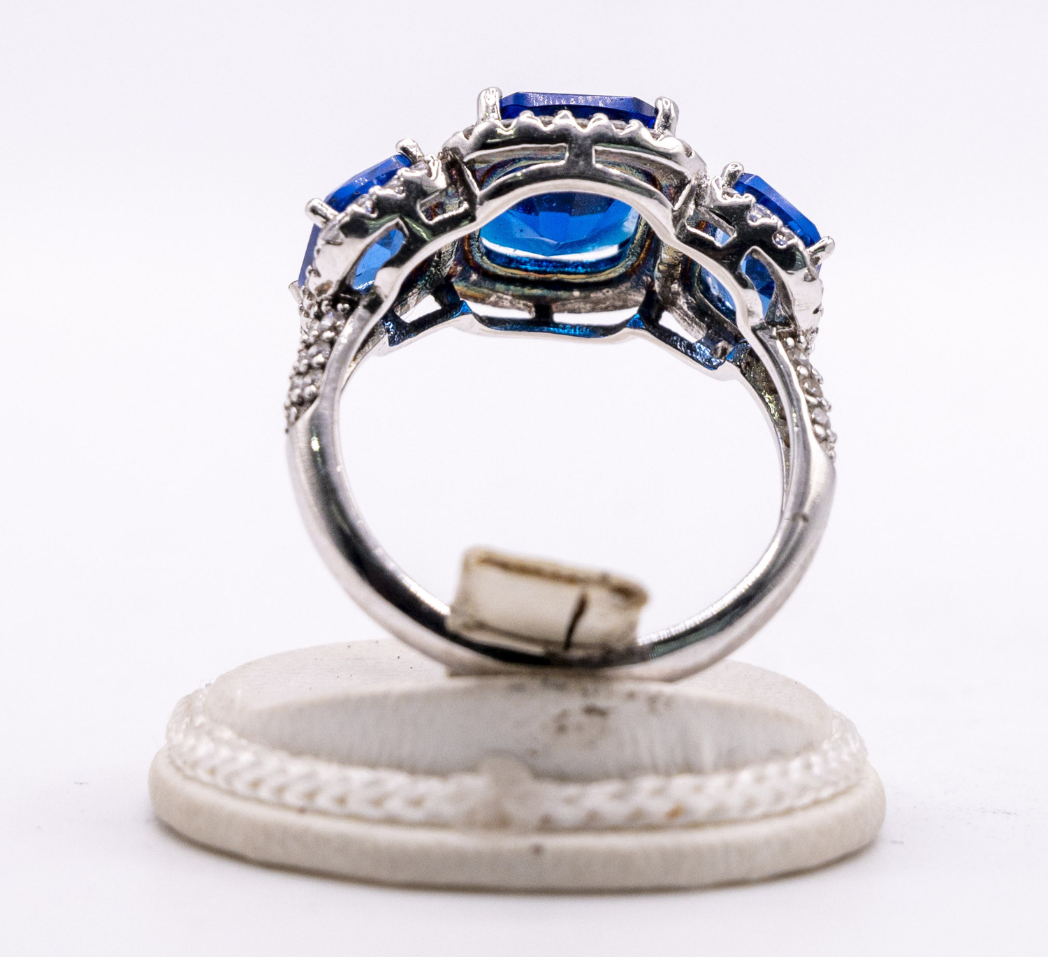 Trilogy Blue Zircon Stone Set on Silver and Rhodium