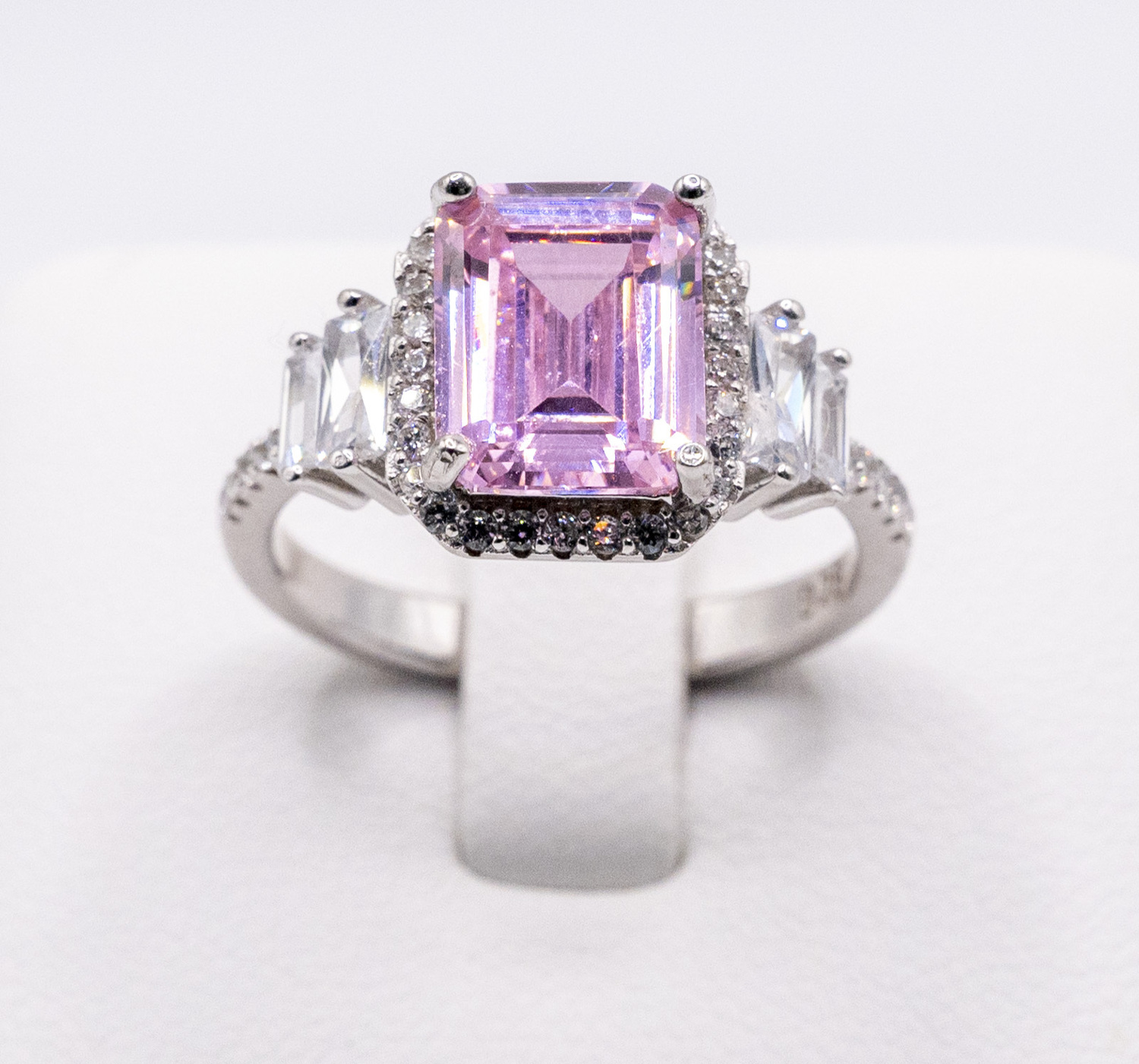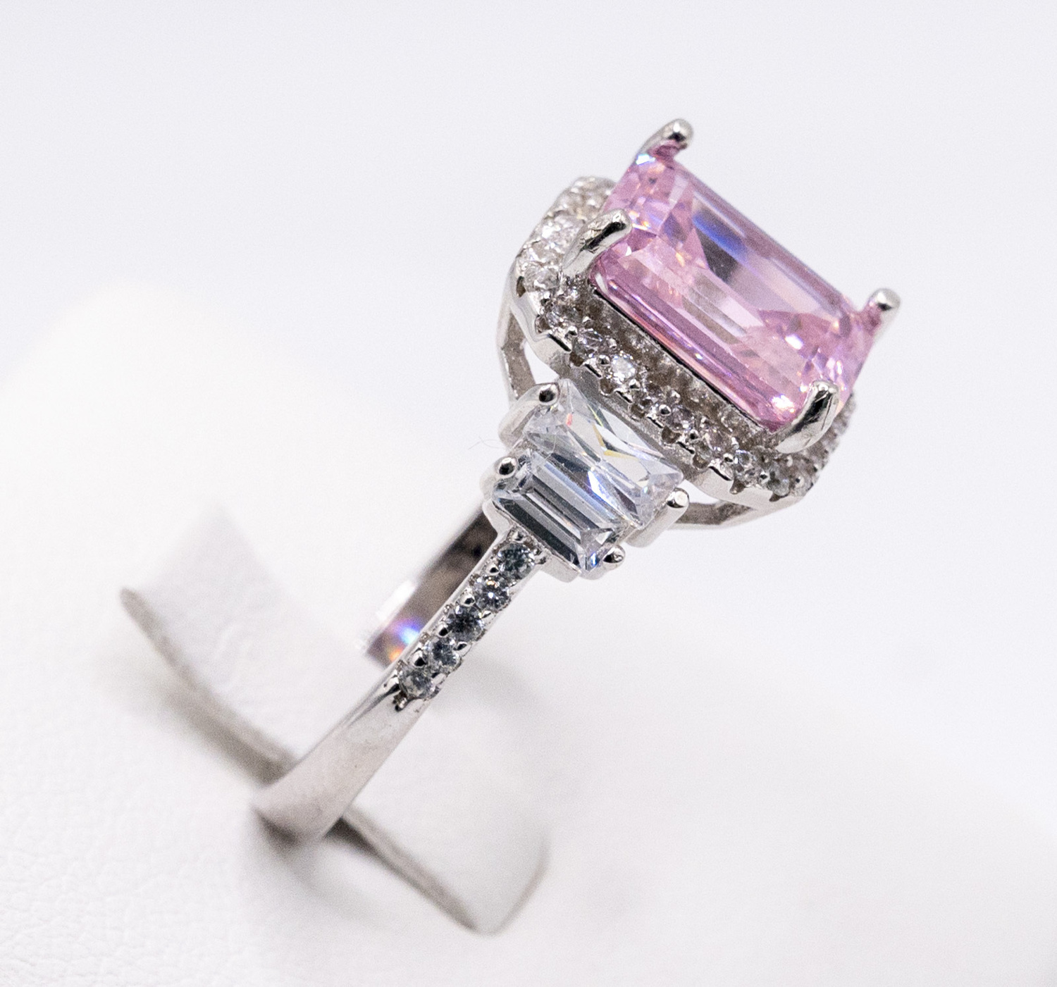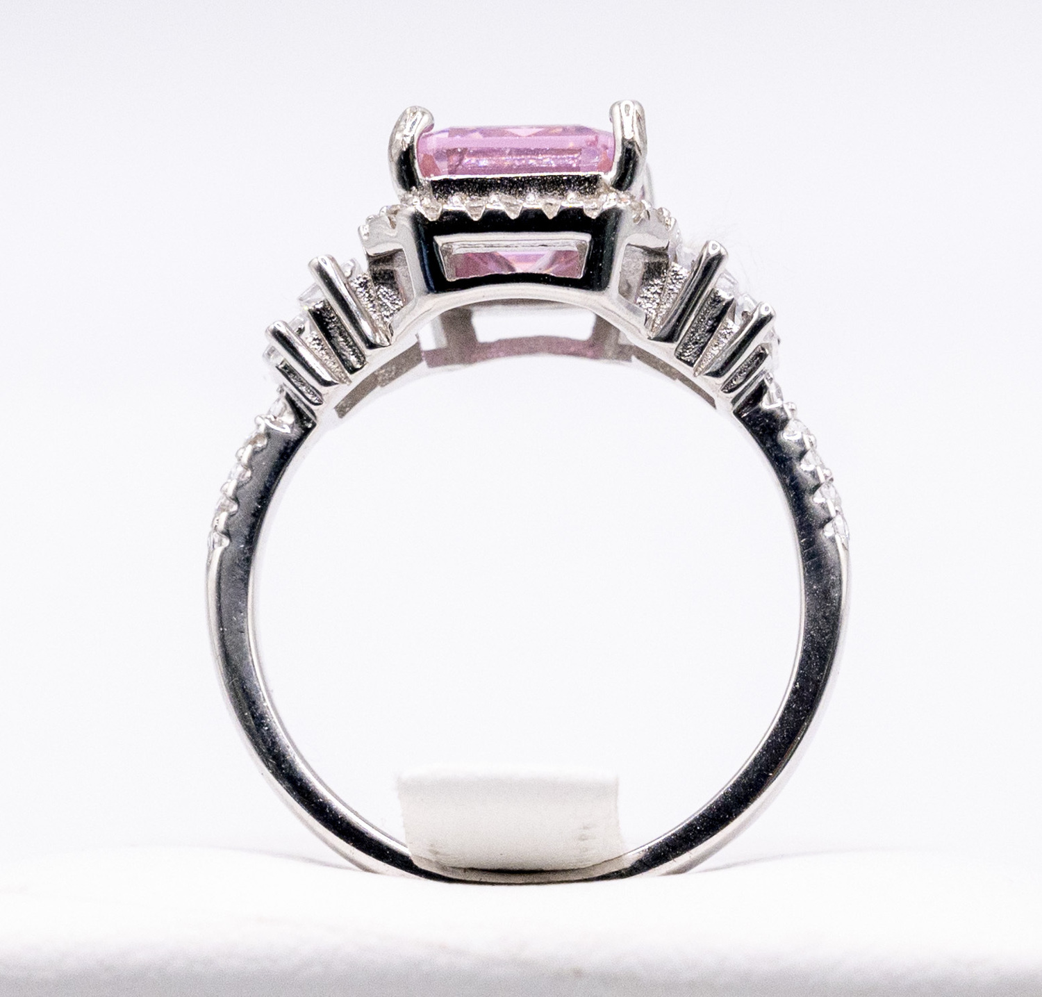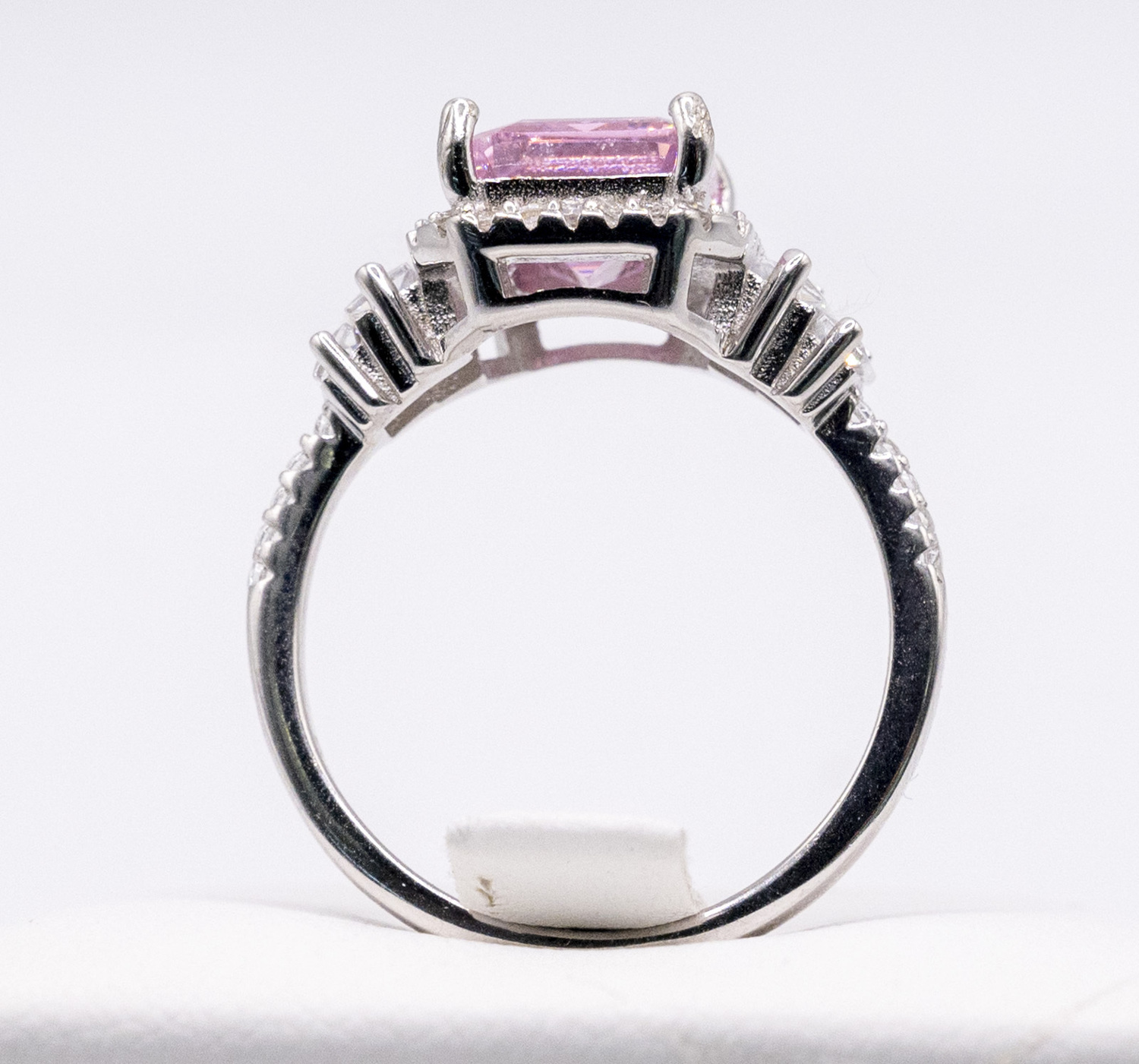 Set on centre tycoon cut pink zirconia gem stone