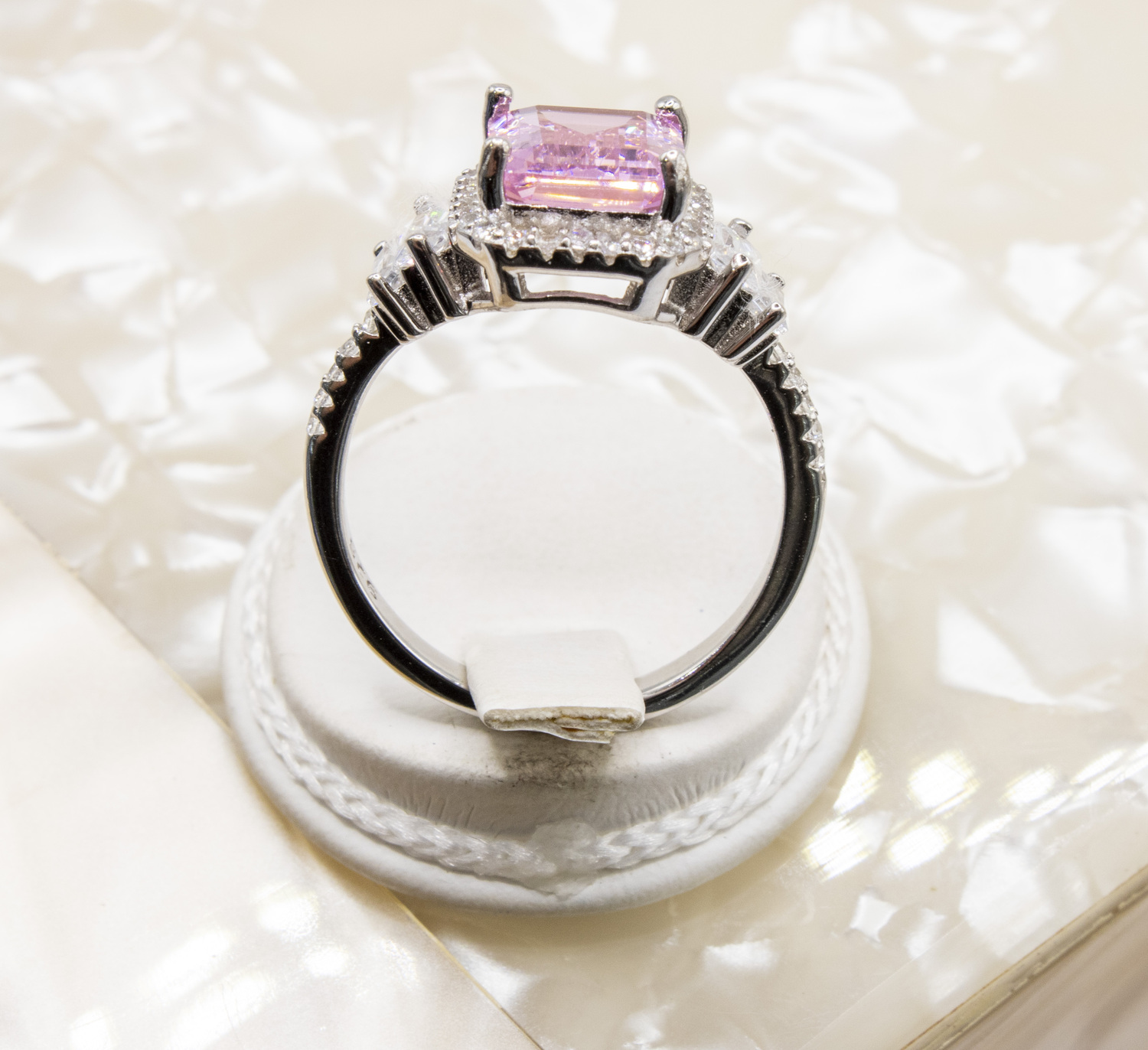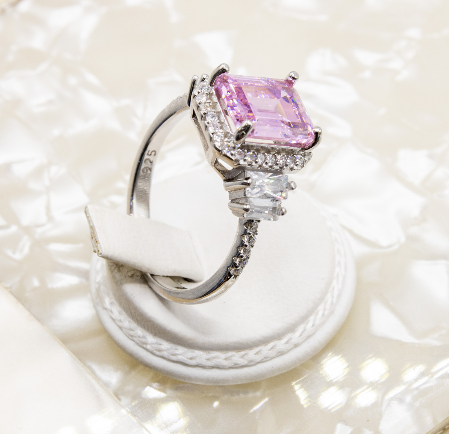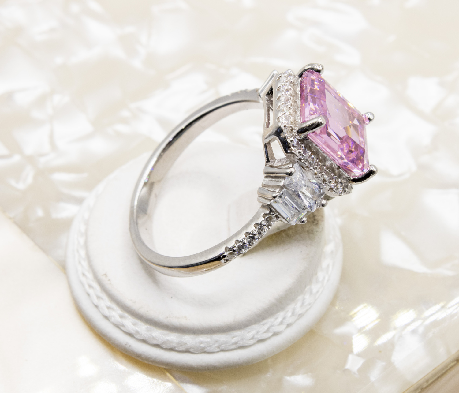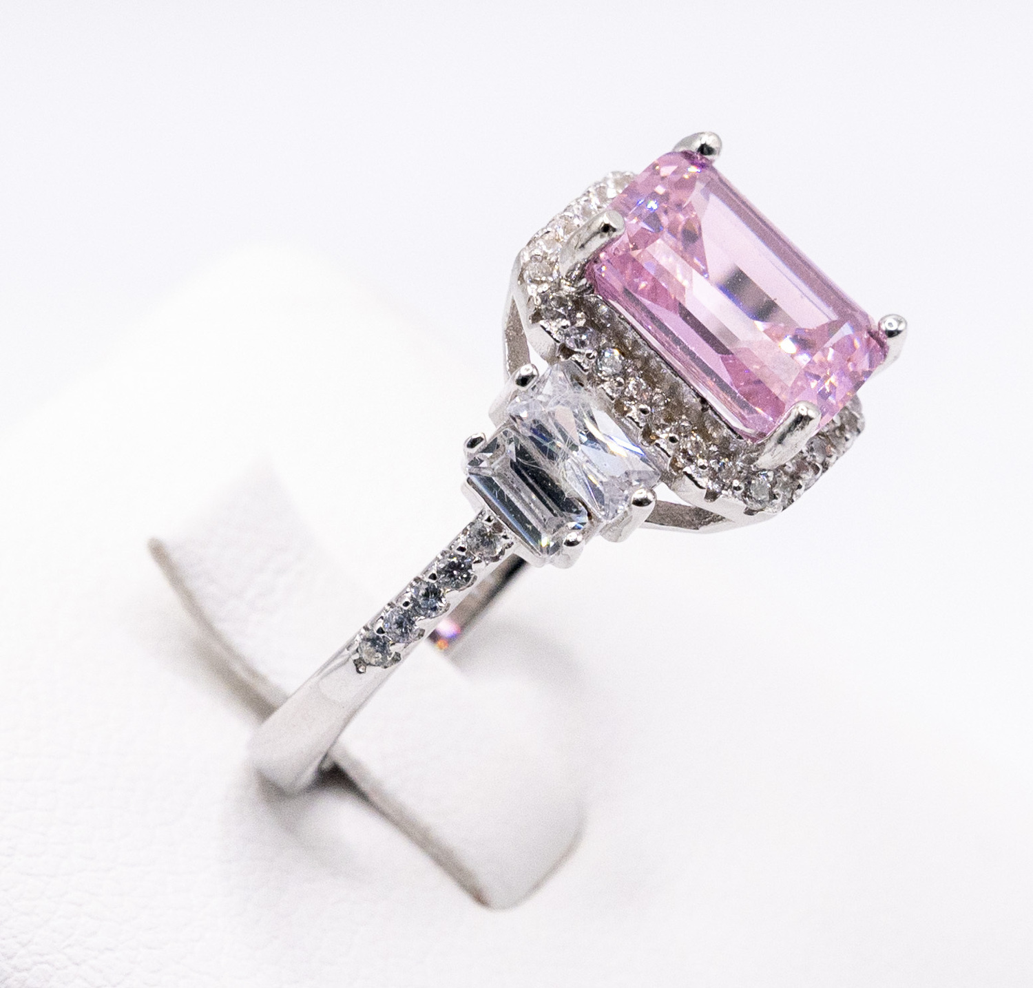 Set on centre tycoon cut pink zirconia gem stone