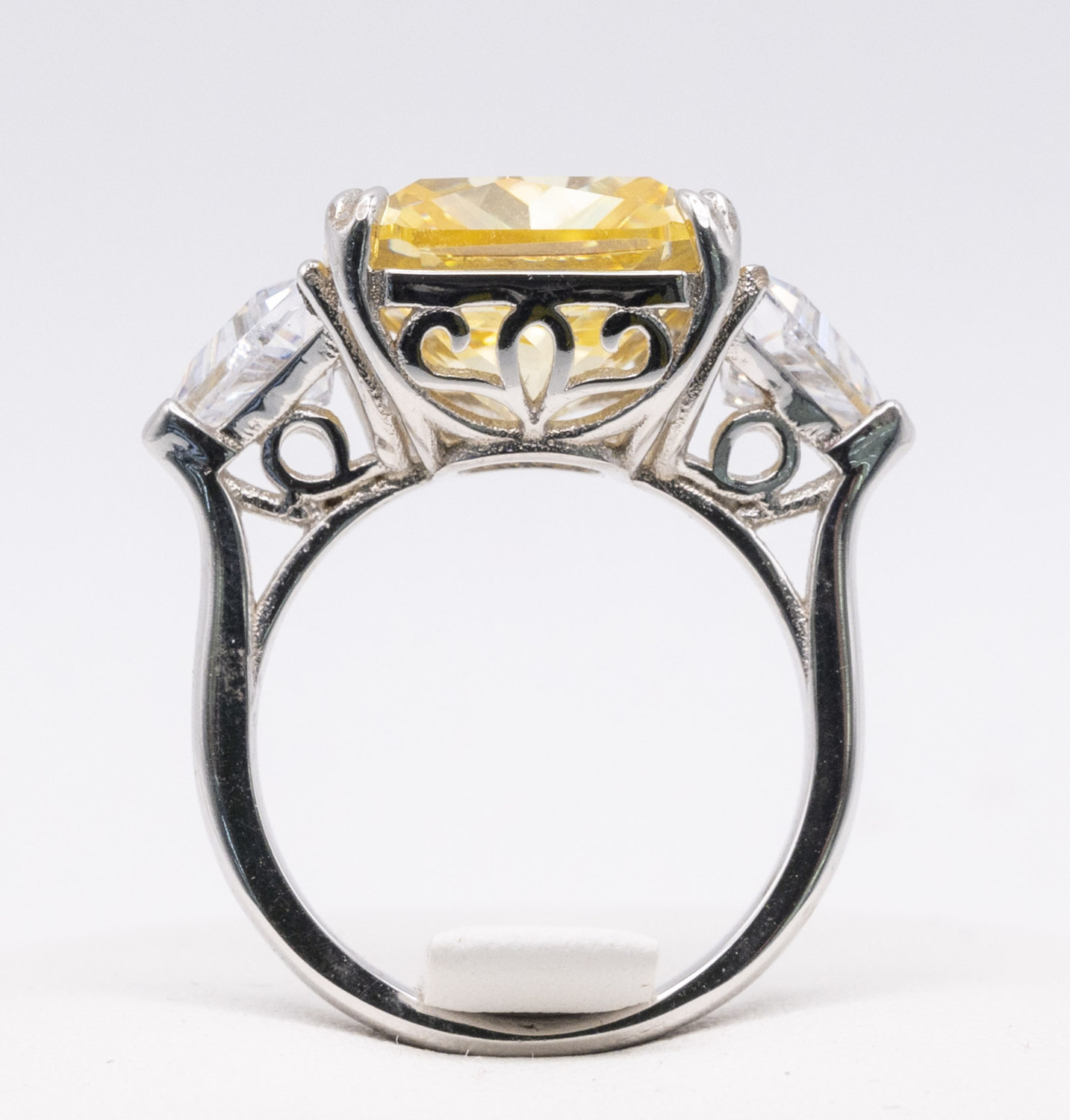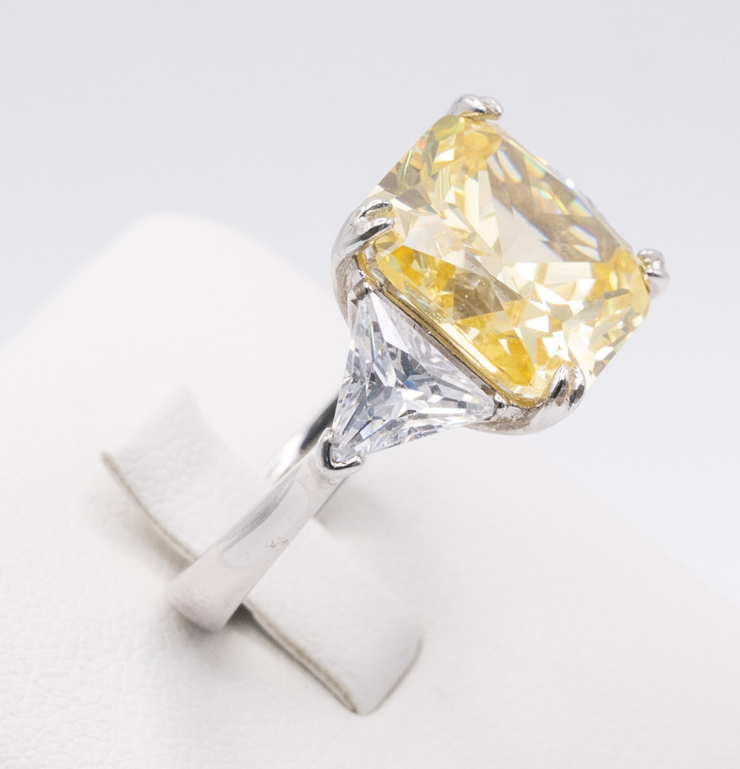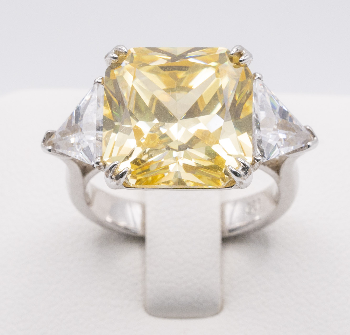 Yellow Moissanite Stone Set on Silver and Rhodium