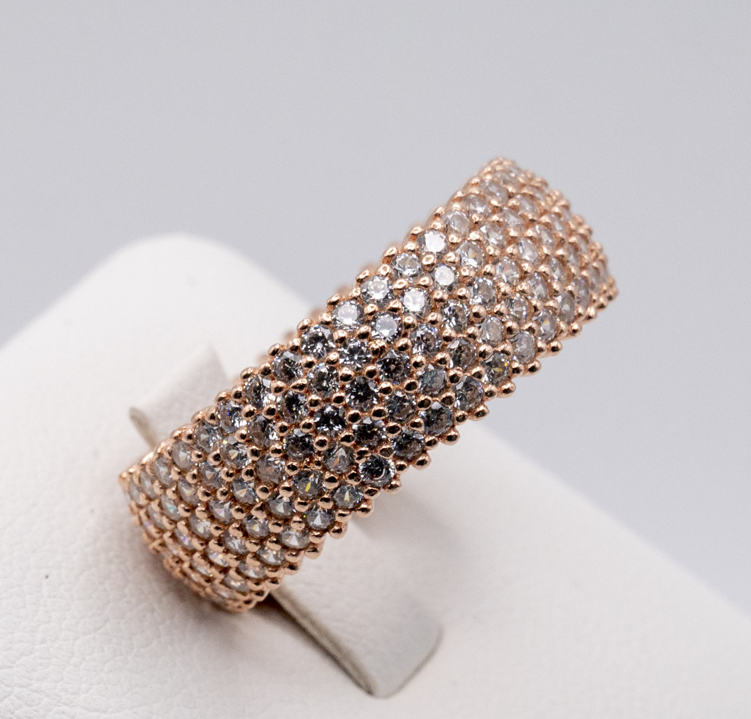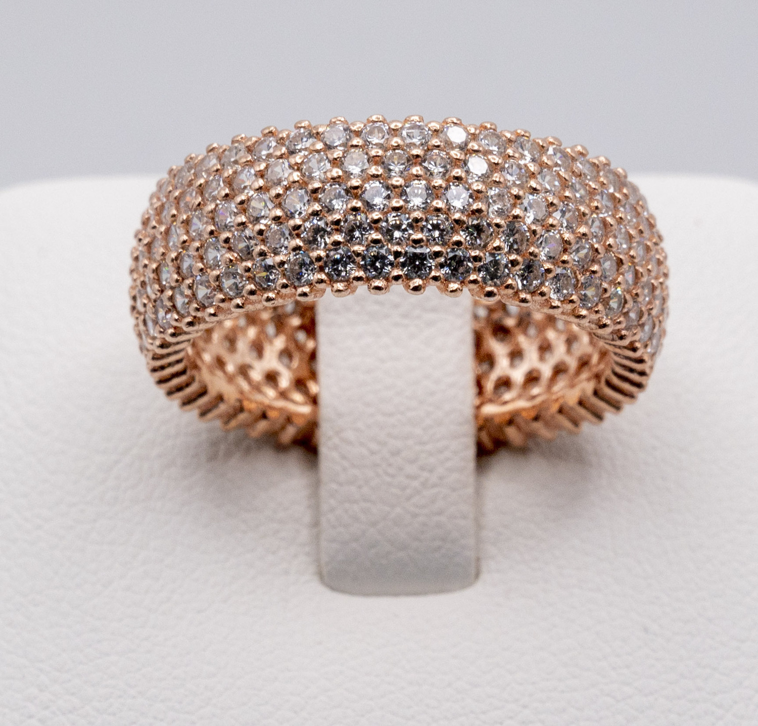 Large band 5 row full eternity ring with zirconia stones